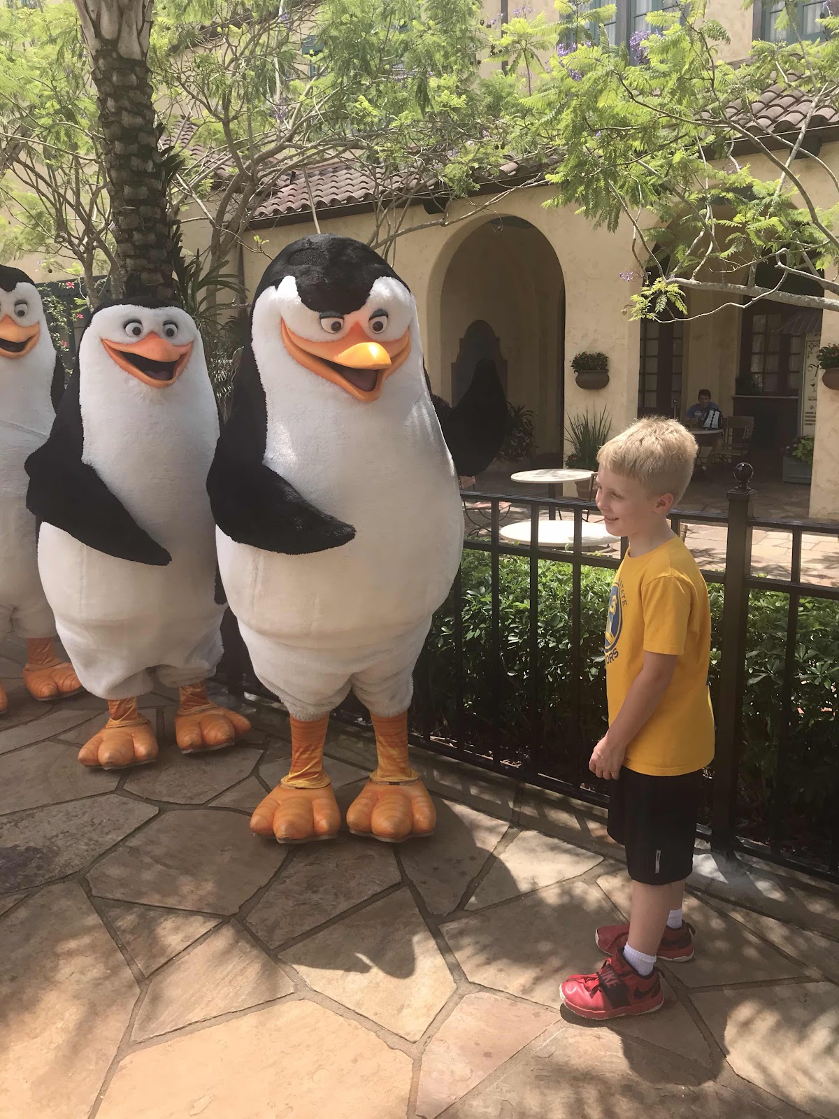 Then it was time for a quick snack. We ended up buying the refillable cups and we were very happy to learn that these cups could either be refilled with coke or icees. While we were snacking, we happened to see the Penguins of Madagascar. I love these guys - they are hilarious.