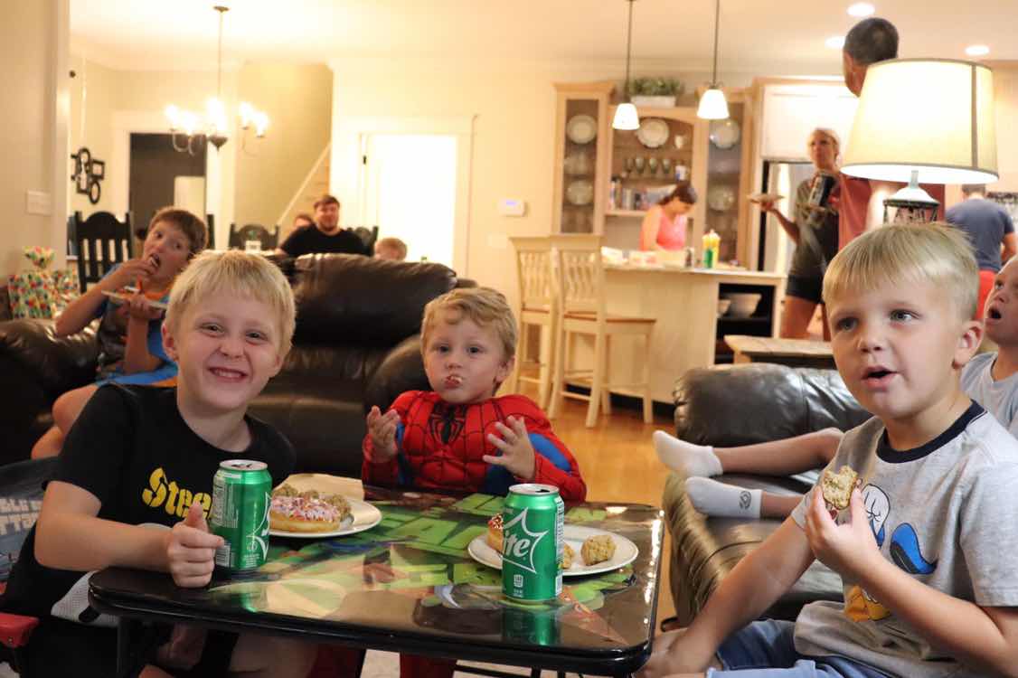 As most of my parties tend to be, this party was a breakfast party. We had donuts, sausage balls and ice cream cake.