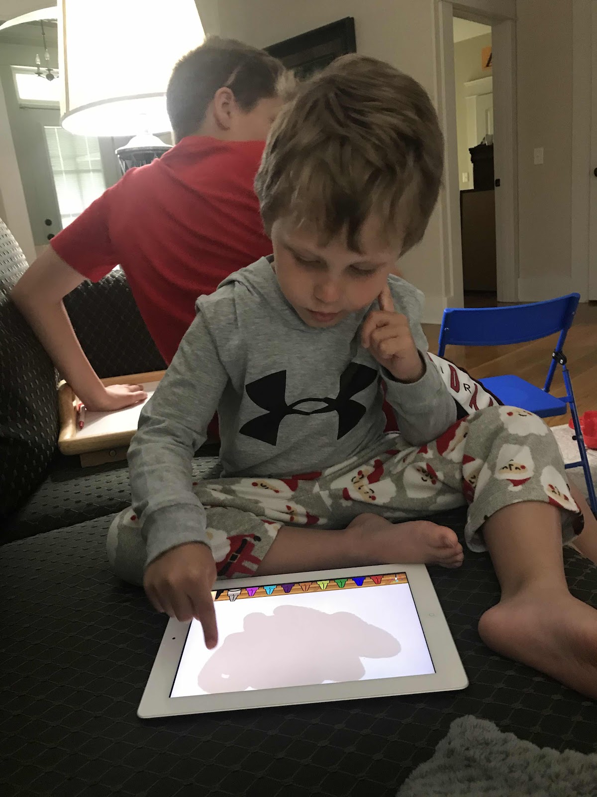 The next thing that we did was dig out the old iPads. Both Finn and Sam would be participating in distance learning through DA on their iPads. Will quickly usurped that technology.